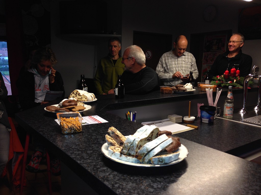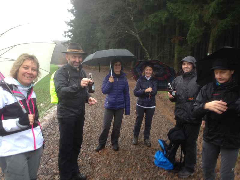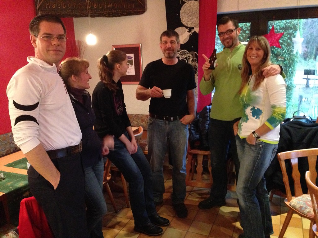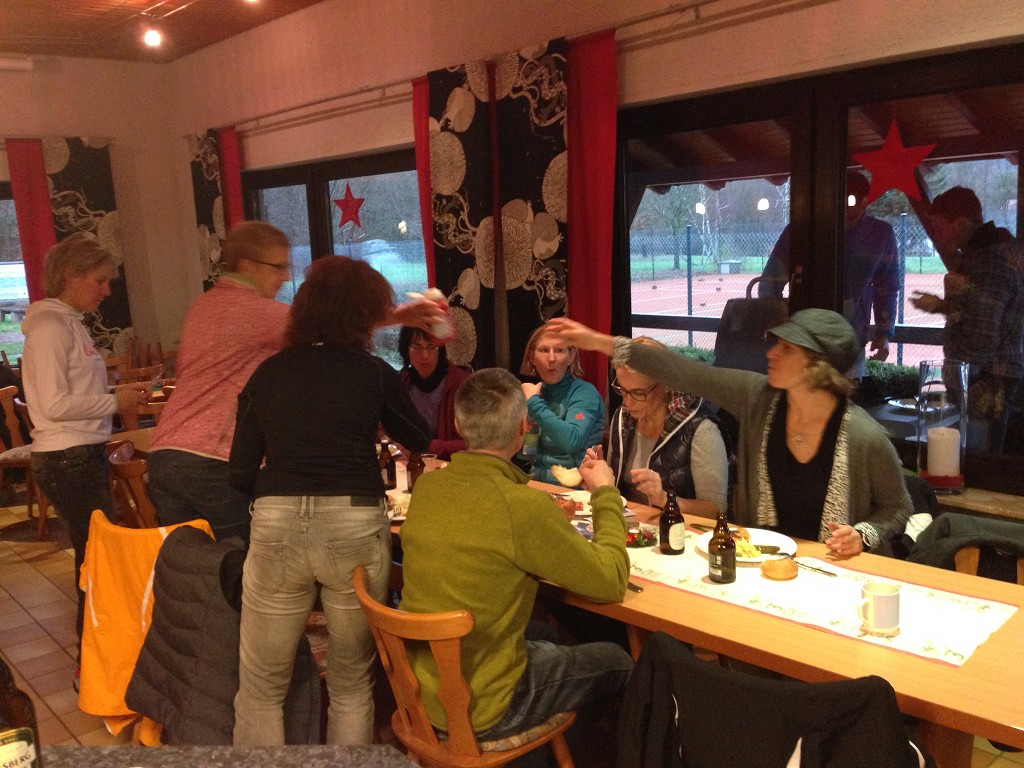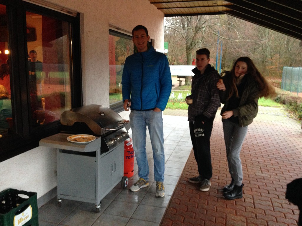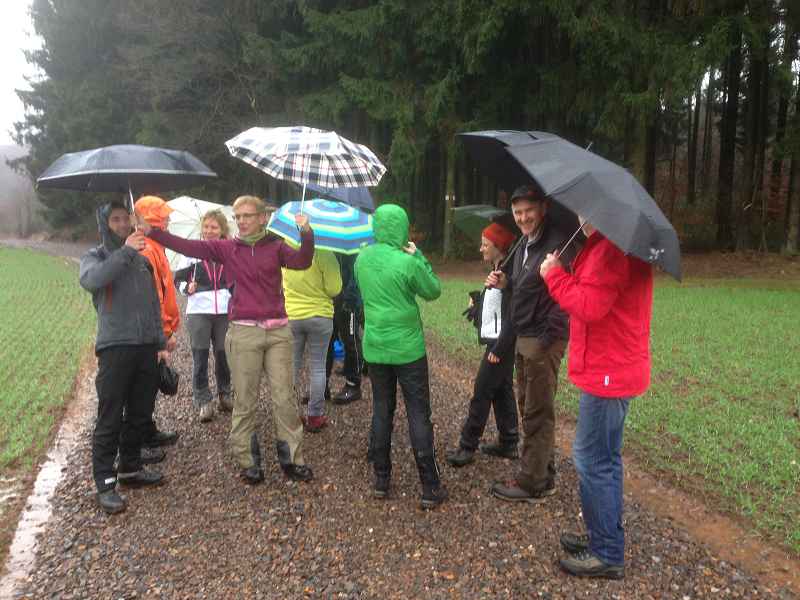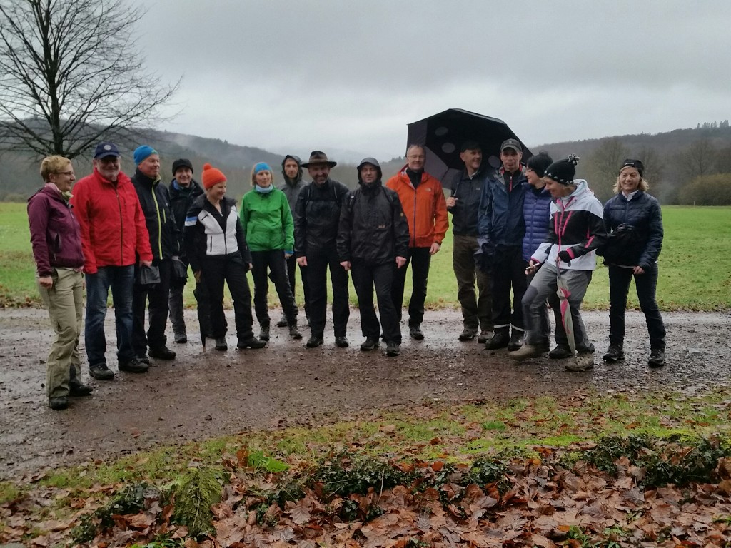 Kein Hund wird bei diesem Wetter vor die Tür gejagt. Die Winterwanderung des TuS Peterberg am 29.11.15 stand in diesem Jahr nicht unter einem guten Stern. Grottenschlechtes Wetter vorausgesagt und eingetroffen. Dennoch trotzten 15 äußerst Hartgesottene dem anfänglichen Dauerregen und erwanderten die ausgewählte Strecke größtenteils über den Johannes-Kühn-Weg rund um Hasborn. Die in anregende Gespräche vertieften Vereinsmitglieder bemerkten fast nicht mehr, dass der Dauerregen allmählich für 5 Minuten nachließ und schon war in geplanter Zeit die 10,5 km mit Pfützen gespickte Wegstrecke bewältigt. Es war zwar ein Materialtest für Mensch und Kleidung. Dennoch fand der folgende spontane Spruch große Zustimmung: „Man ärgert sich nur über das, was man nicht gemacht hat!“. In diesem Sinne trafen sich die 15 wohlgelaunten Wanderer mit weiteren 20 Vereinsmitgliedern zum Grillen in Hasborn und erlebten einen kurzweiligen und geselligen Nachmittag. Danke an alle, die diese Veranstaltung unterstützt und bereichert haben.
